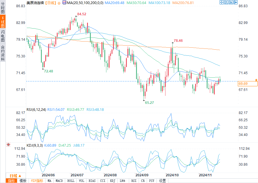 WTI原油期货近期在窄幅区间内交投。地缘政治风险和需求复苏有利于看涨前景,但全球经济数据疲弱可能限制涨势。