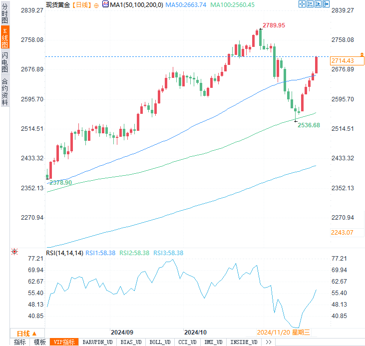 本周,现货黄金价格成功突破了2670美元的关键阻力位,价格稳固站上2700美元,可能为测试2750美元甚至2790美元打开空间。